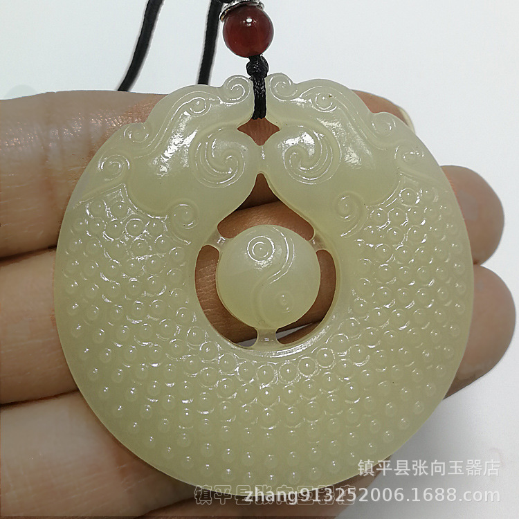 南陽玉器卸売汗玉模造古龍牌大サイズのペンダントと田玉色の男女の玉のアクセサリー