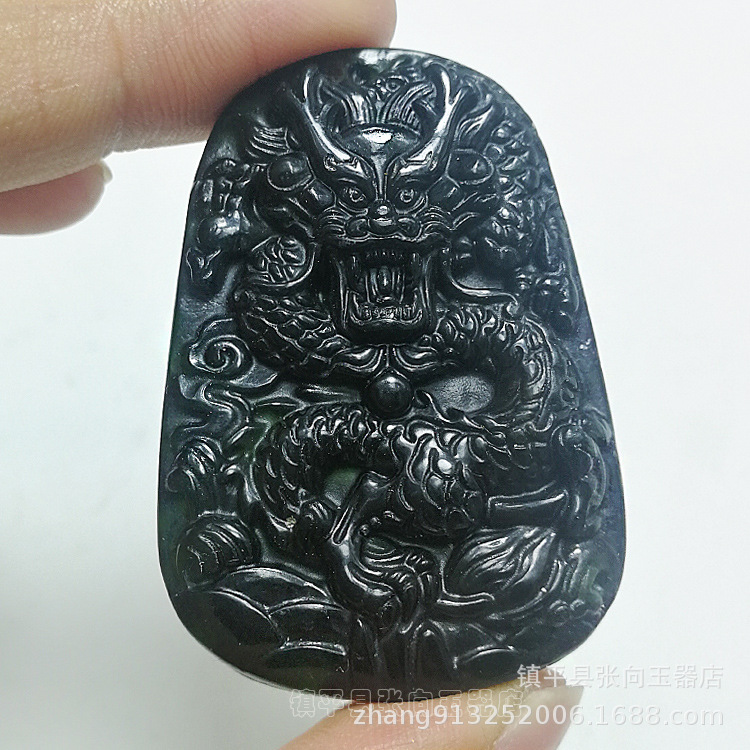 玉器卸売り新疆墨玉龍牌ストラップ蛇紋石玉黒墨玉龍牌ペンダント玉アクセサリー卸売り