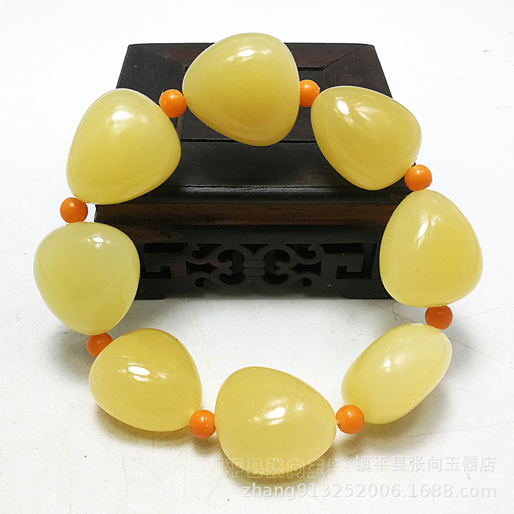 南陽玉器黄玉の大きいサイズの手串のみかんのトウモロコシの黄玉の男女の金の玉のアクセサリの玉のブレスレットの卸売り