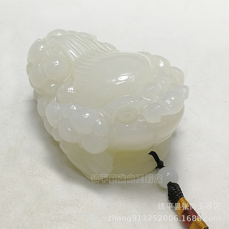 白玉彫刻金ヒキガエルの取っ手はアフガニスタンの羊脂白玉金ヒキガエルの小さい置物の家の玉の装飾品を卸売りします。