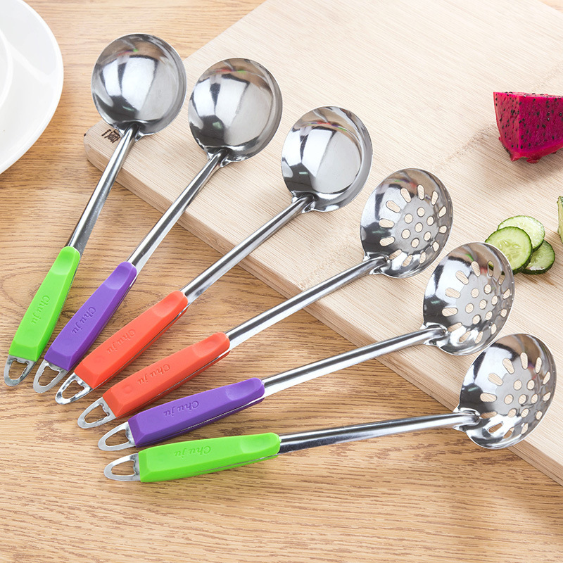 ステンレスの台所用品の鍋のスプーンの台所の家庭の食器のスプーンのキャンディーの色の長い柄のスプーンのメーカーの卸売り