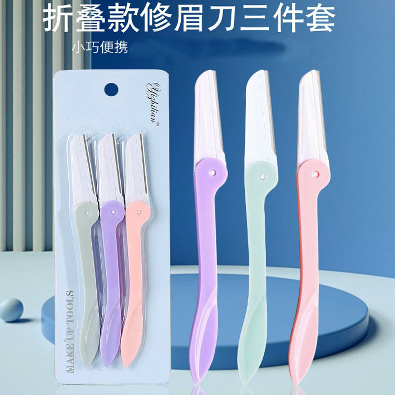 ステンレス折りたたみ修理レディース美化粧ツール眉毛剃りナイフ3本セット美容眉毛修理ナイフ眉毛剃りナイフ卸売り