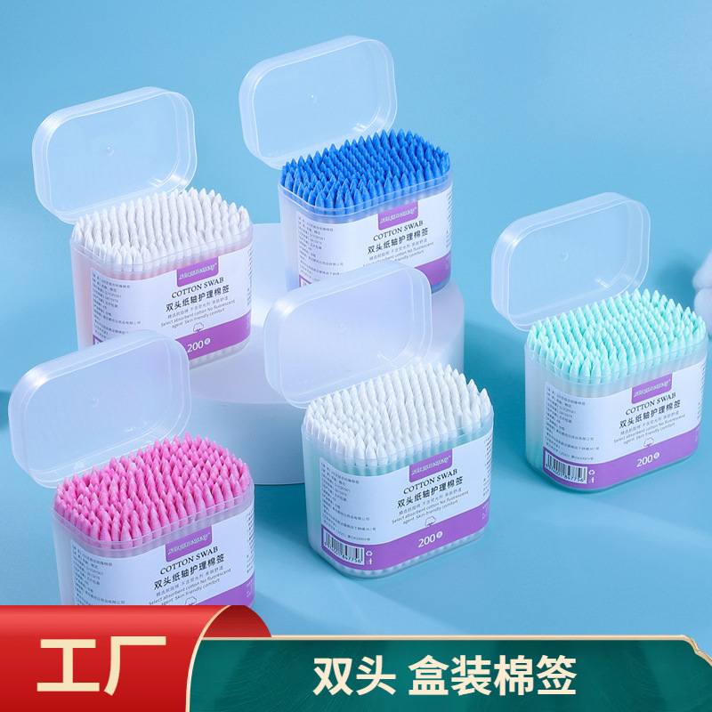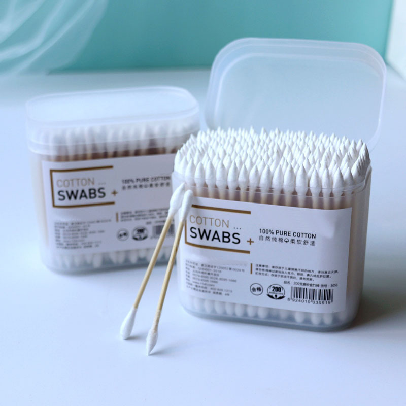 双头棉签螺旋头竹棒一次性棉签200支装美容清洁棉棒掏耳朵棉花棒