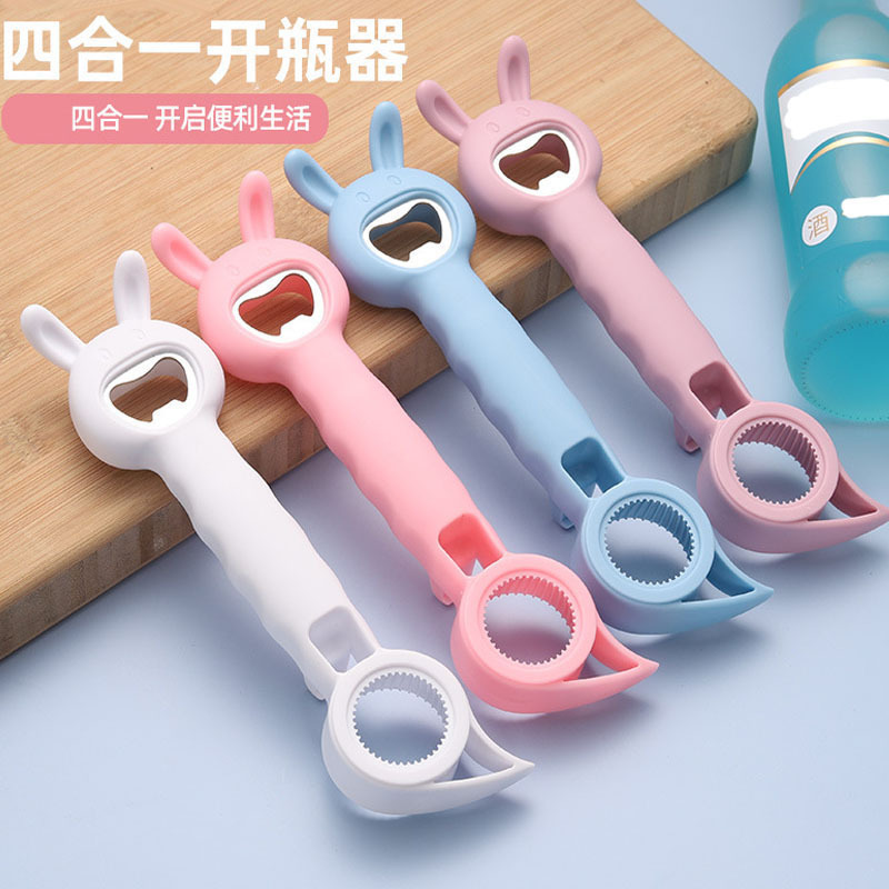 四合一の栓抜き器のビール飲料の栓抜き器の瓶の多目的の缶開け器の蓋をひねっています。