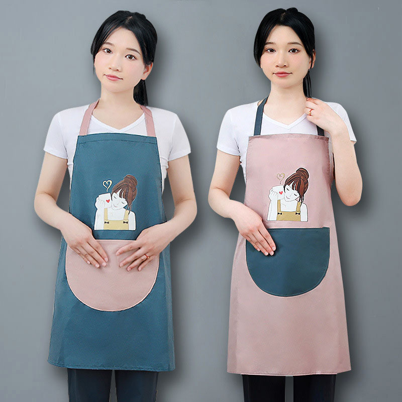 男女の綺麗なファッション新型エプロンキッチン家庭料理女性防水防油ウエストエプロン卸売り