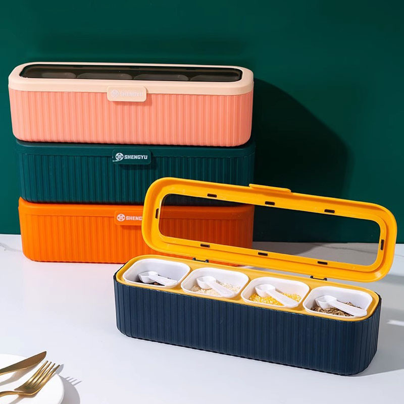 轻奢北欧家用调味盒分隔式四格一体佐料调味罐套装带盖厨房调料盒