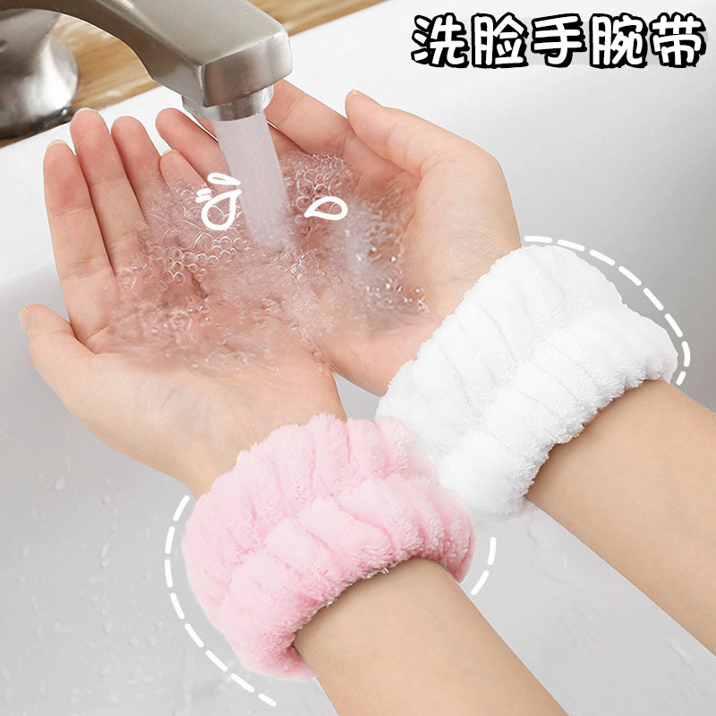 洗面手首帯の女性のブレスレットは髪を縛っています。