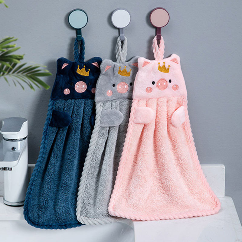 ハンドタオル吊り下げ式かわいい韓国子豚刺繍吸水雑巾キッチン漫画ドライハンドタオル雑巾卸売り