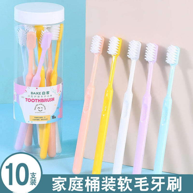 10本入りの柔らかい毛の笑顔の桶に歯ブラシを入れます。