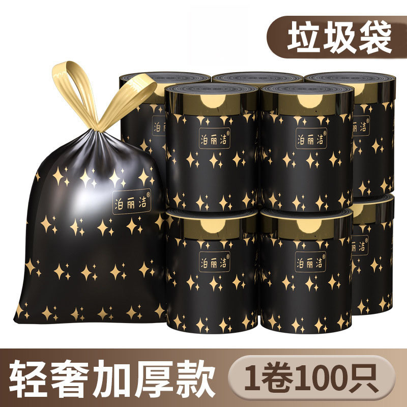 巾着式プリントゴミ袋家庭用厚手キッチンオフィス手持ち自動収納口大型巻きプラスチック清潔袋