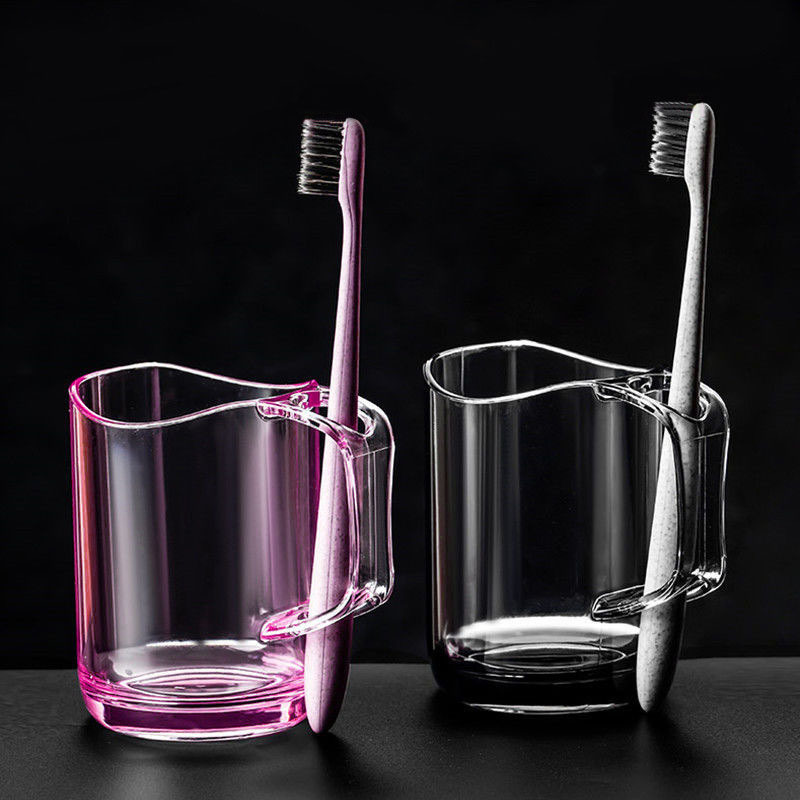 北欧透明创意简约几何洗漱杯男女漱口杯家用情侣塑料带牙孔牙刷杯
