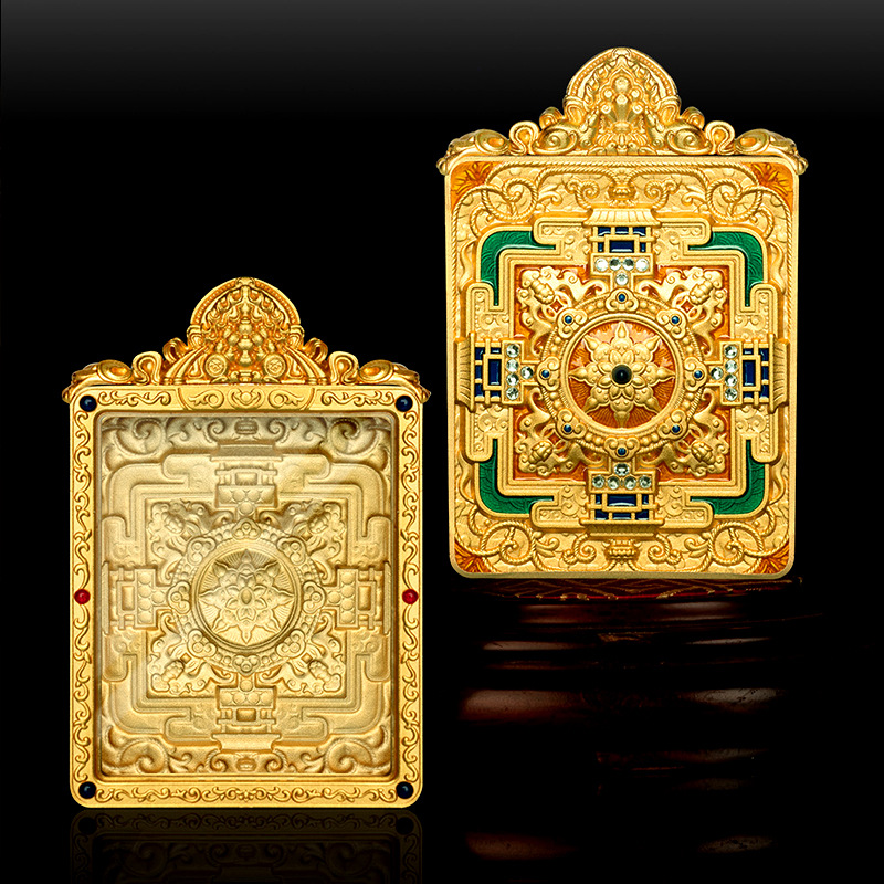 双鹿聴経花頭壇城真鍮ガウ箱唐カードペンダントエナメル高レリーフ両面立体