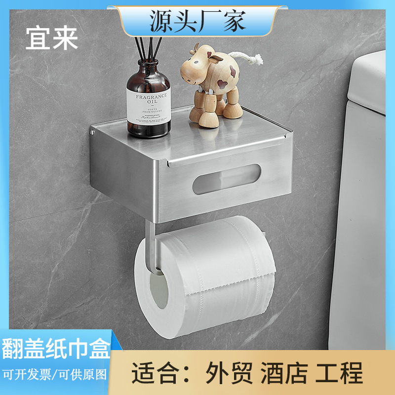 新しいカバー付きティッシュホルダー304ステンレス製穴なしトイレットペーパーホルダー
