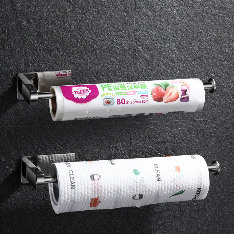 304ステンレスキッチンティッシュホルダー穴なし壁掛け式キャビネットラップ吸油ロール紙多機能ハンガー