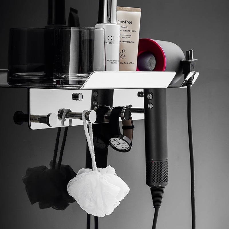 ユニバーサルヘアドライヤー収納ラック 304 ステンレス鋼パンチフリー家庭用多機能ライト高級ブラケットダイソンヘアドライヤーラック