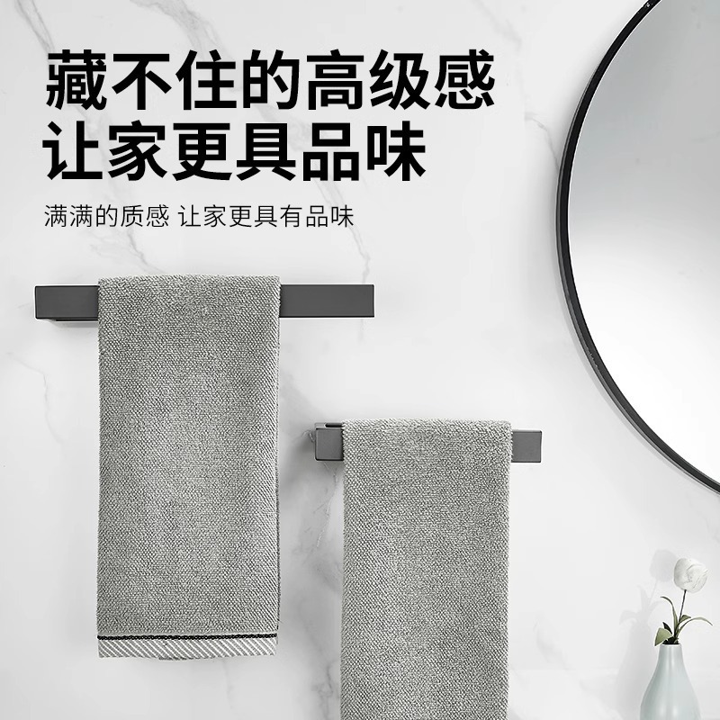 カスタマイズされた 304 ステンレス鋼のライト高級スタイルのタオルラックバスルームパンチフリーシングルロッド吊りタオルラッククリエイティブタオルリング