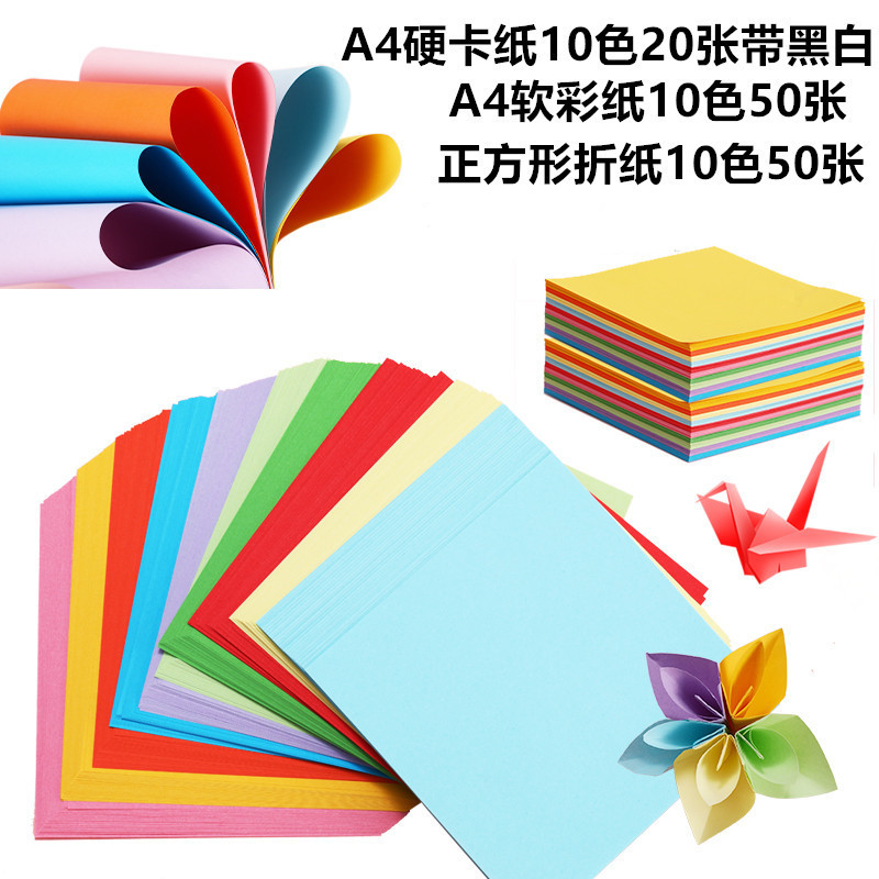 子供手作り色紙セットa4硬紙10色20枚a4ソフト色紙10色50枚手作り折り紙50枚