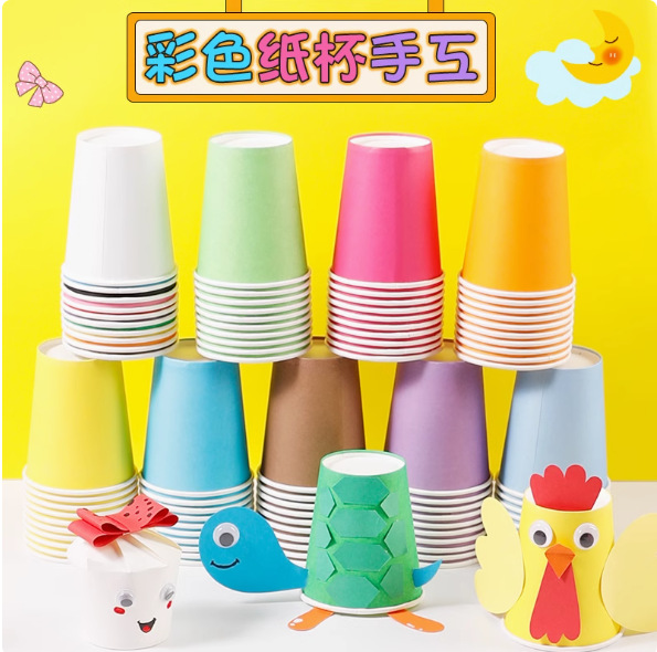 カラフルな紙カップ使い捨てカップ幼稚園 diy 手作り早期教育子供の創造的な混合増粘紙カップ