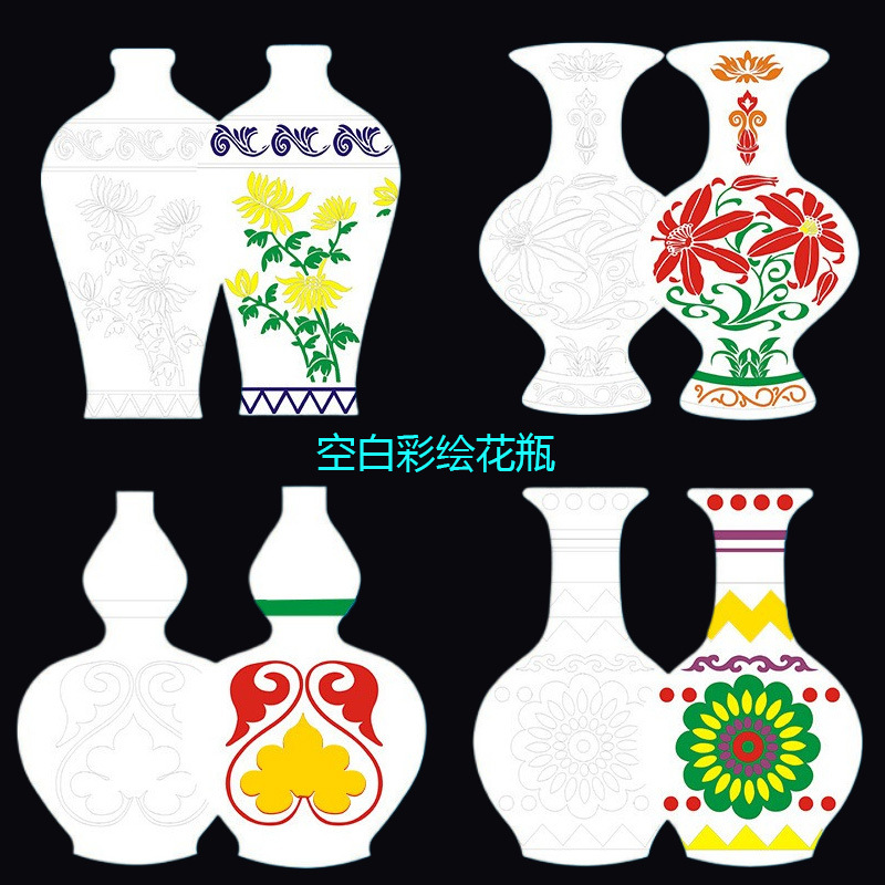 花瓶絵画ボール紙空白底ボトル手作り金型塗装手描きボール紙青と白の磁器 diy