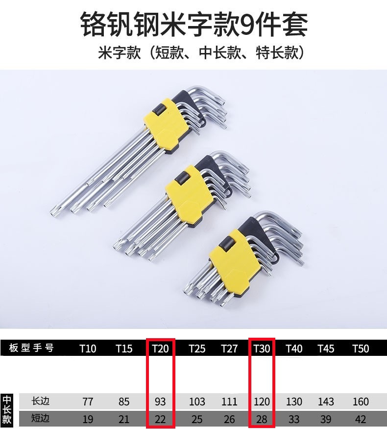 米星梅花レンチ T3T4T5T6T7T8T9T10T15T20L型穴付き米星レンチセット