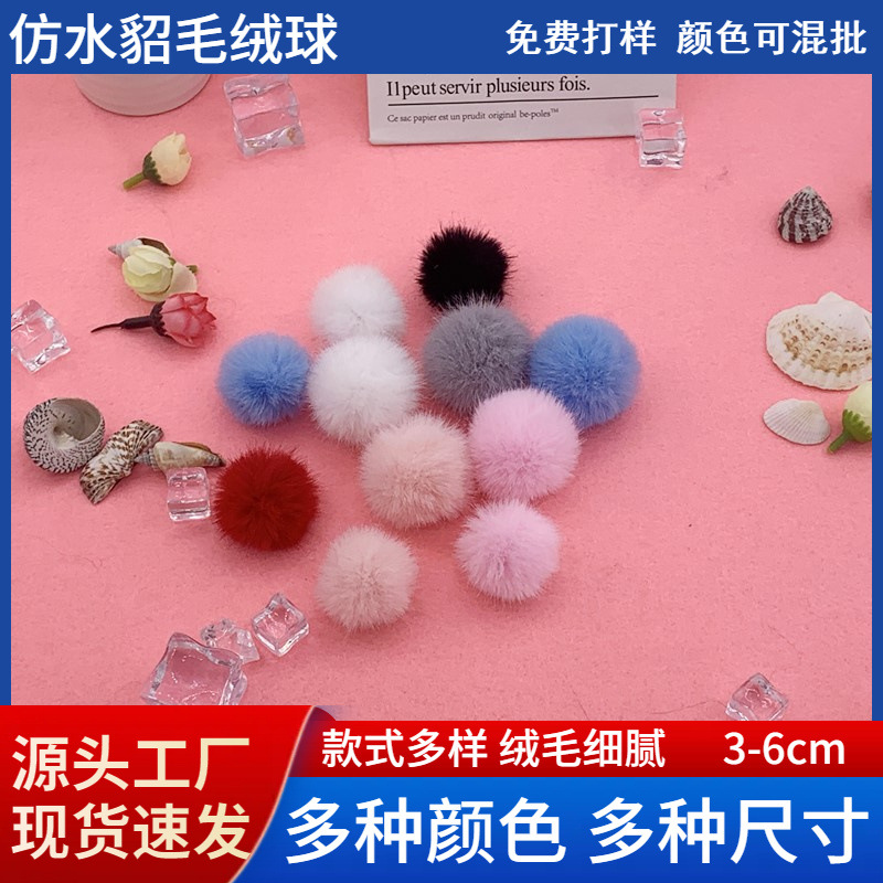 3cmミンク毛玉髪飾り手作りdiy子供ヘアアクセサリー