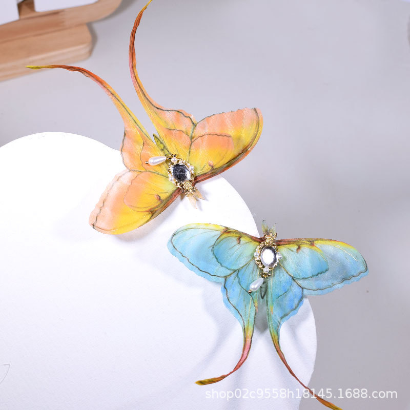 5.5新型シミュレーション4層薄紗蝶カラー真珠布芸鳳尾蝶DIY手作り髪飾りアクセサリー