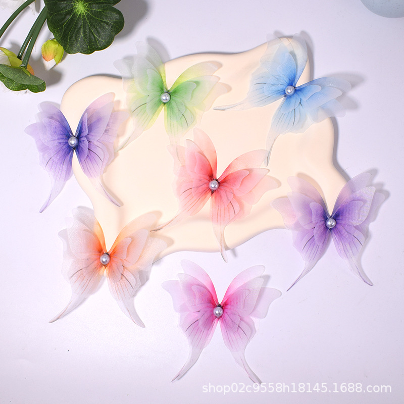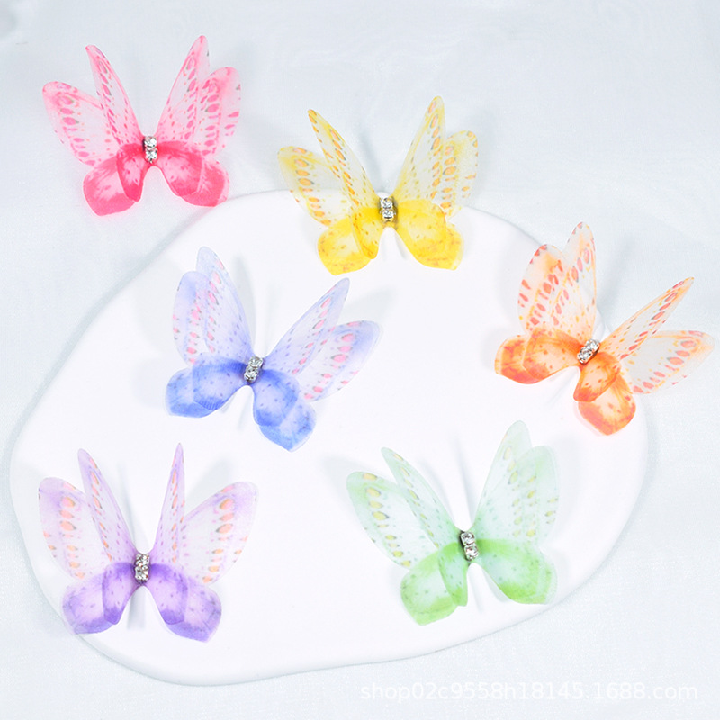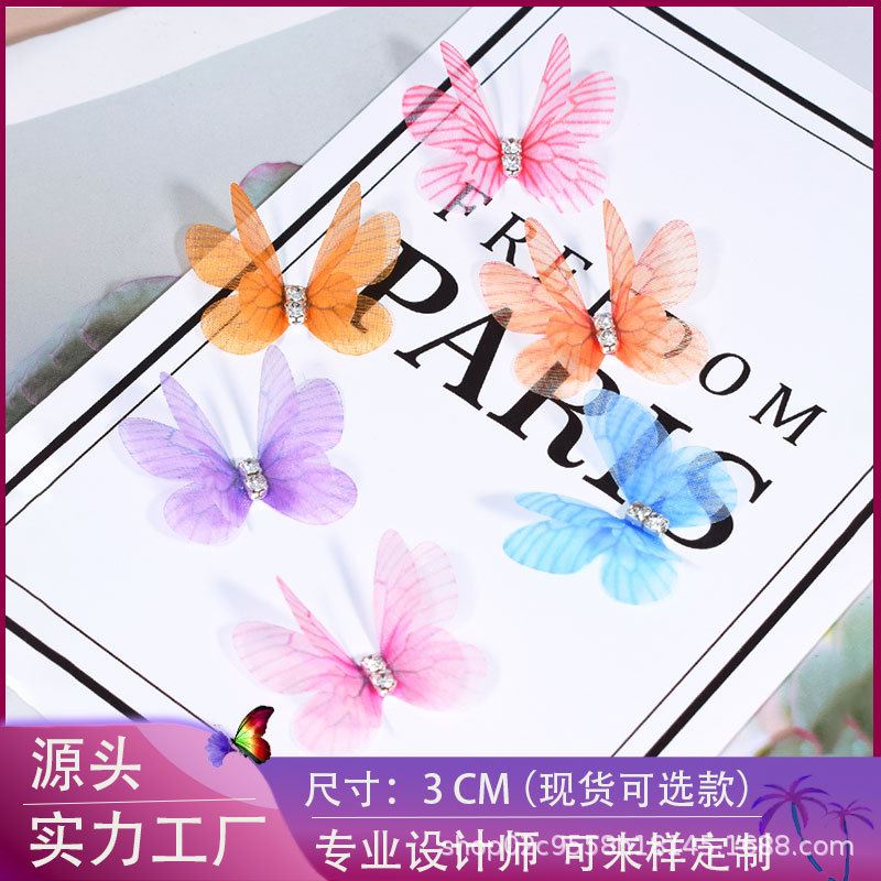 小口の卸売りのヘアピンのアクセサリーの服の靴のアクセサリーの二重の立体の薄い紗の蝶の翼の手作りのdiyの部品