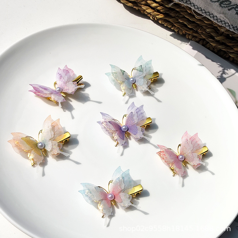 小口の卸売りの露店のアクセサリの立体の薄い紗の蝶のヘアピンの超仙の小さい女の子のアヒルの口は時代の漢服のサイドクリップを挟みます。