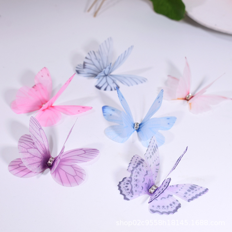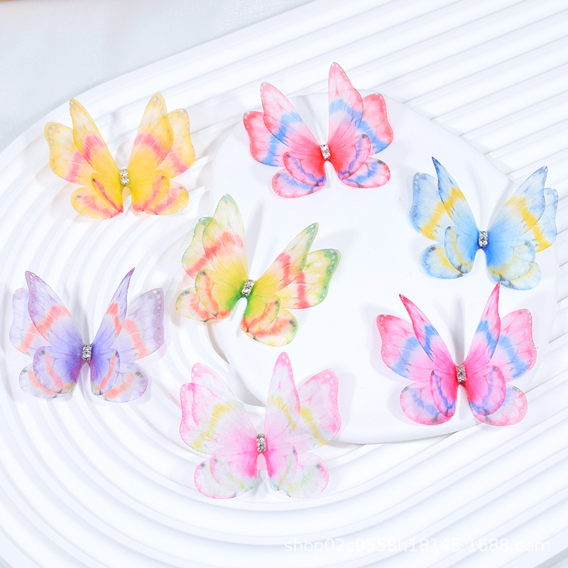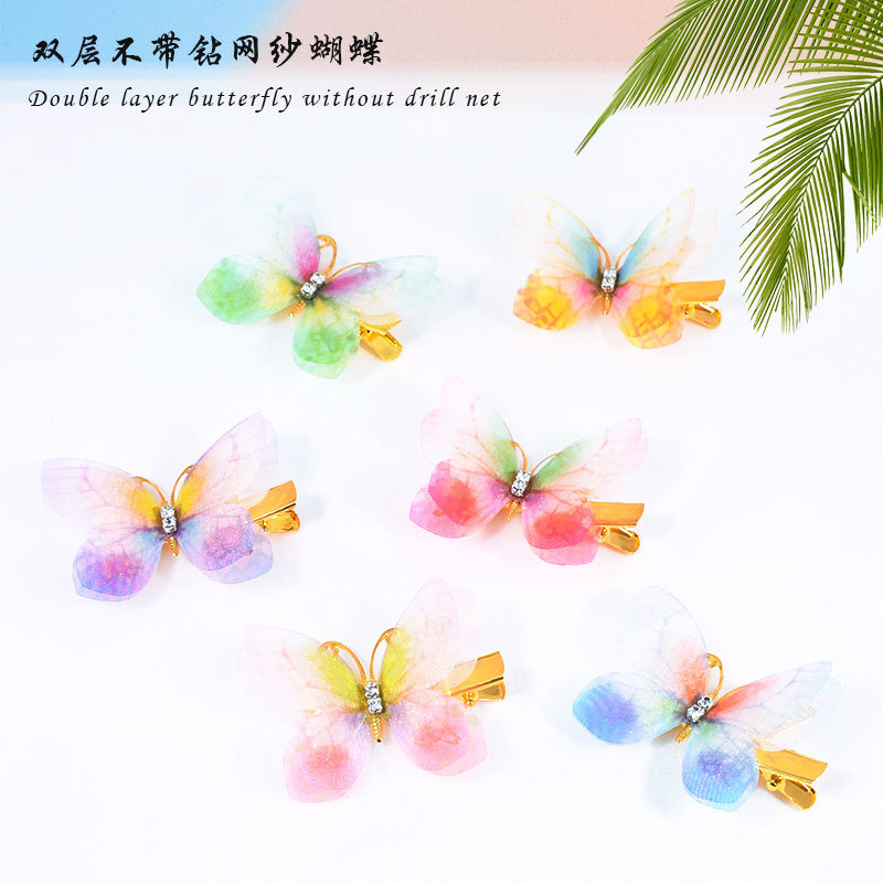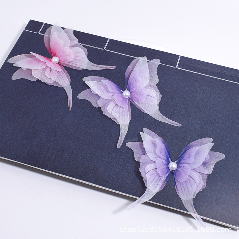 少額卸売り服装靴飾り補助材料古風漢服ヘアピン飾り二重薄紗蝶手作りdiy部品