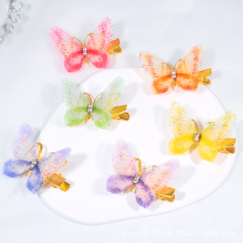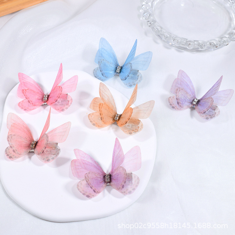 【クロスボーダー専用】カラー布芸シミュレーション蝶仙気少女古風アクセサリーdiyヘアピン材料