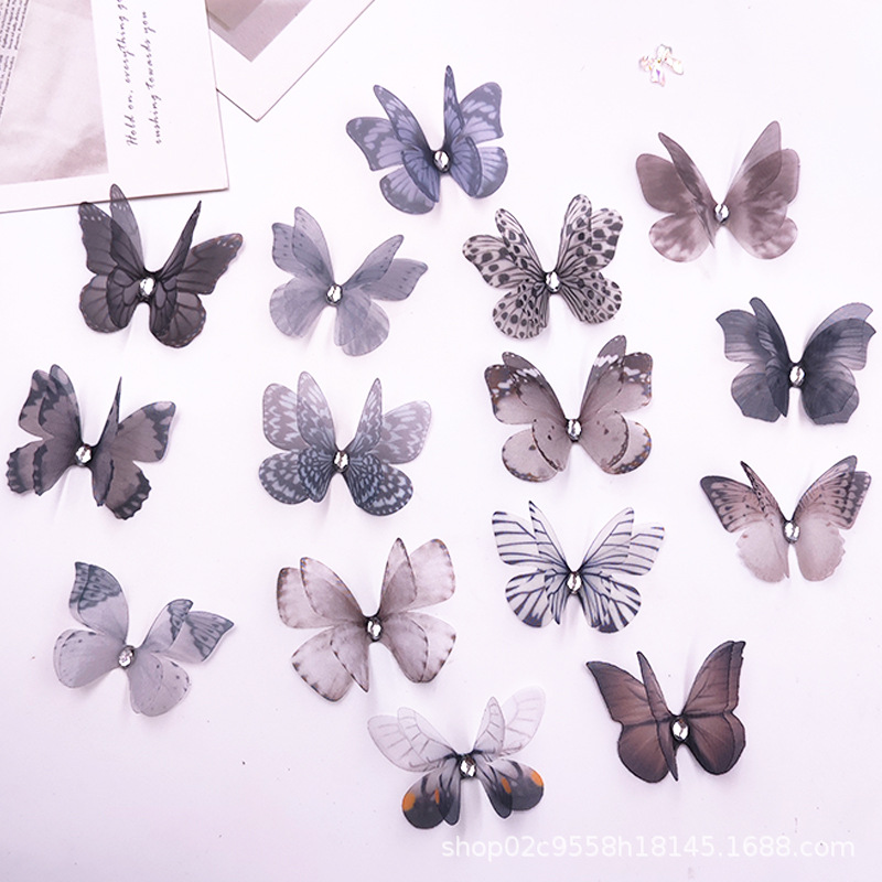 新しい白黒立体二重薄紗蝶手作りdiy部品漢服古着髪飾り材料