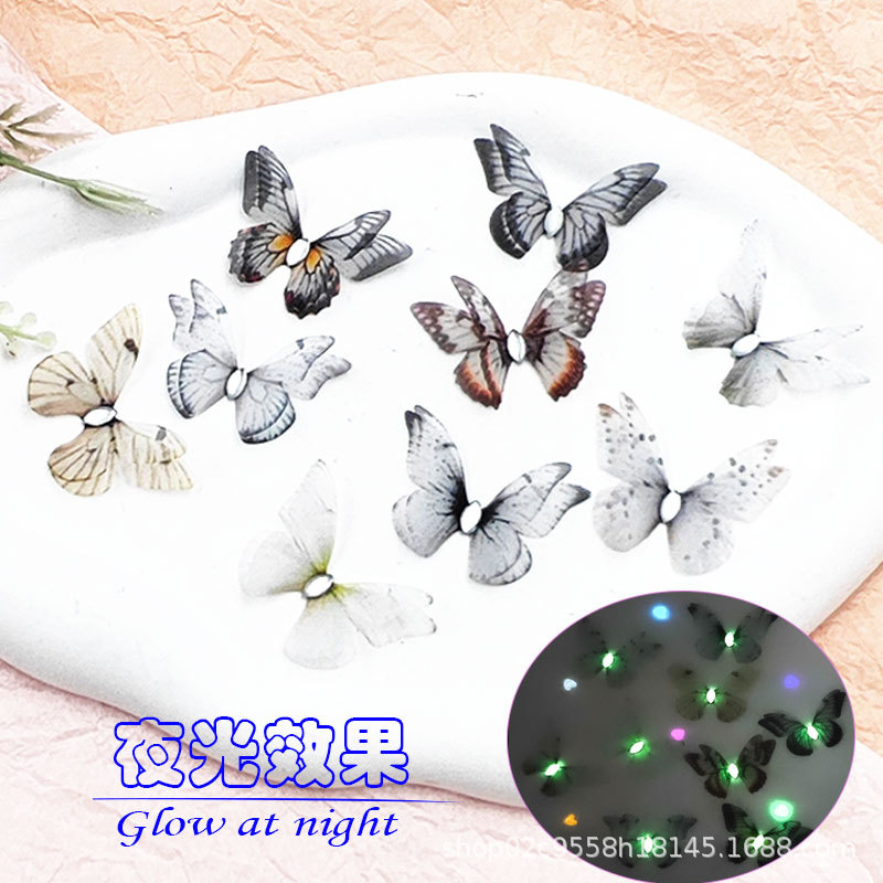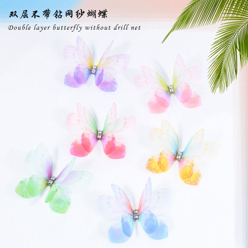 クロスボーダー専用新型二重薄紗夜光蝶翼diy補助材料頭飾り部品パーティー装飾材料