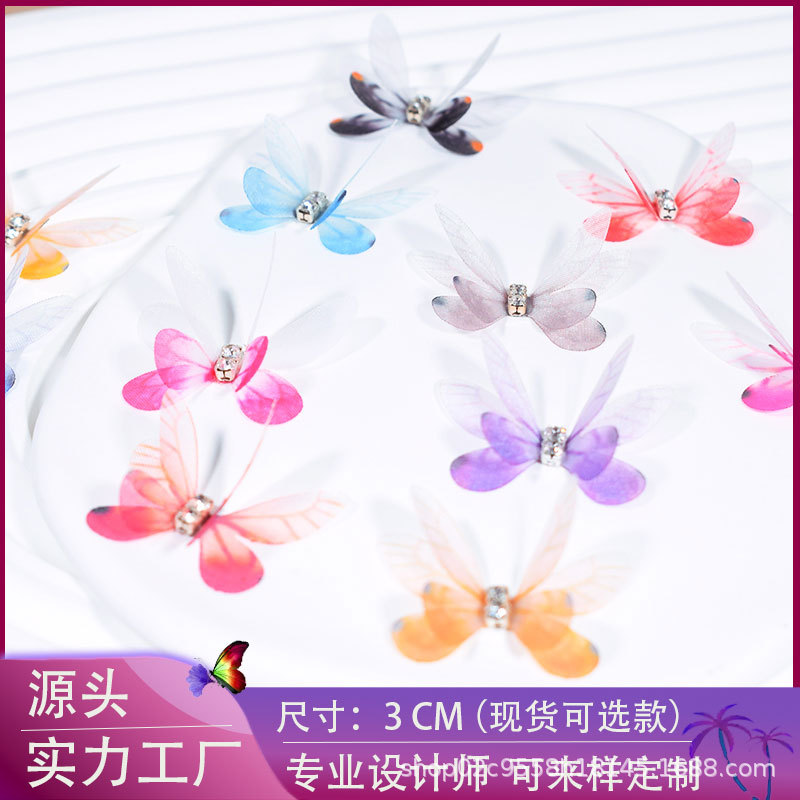 3cm二重立体シミュレーション薄紗小トンボ翼手作りアクセサリーDIY古風漢服髪飾りヘアピン部品