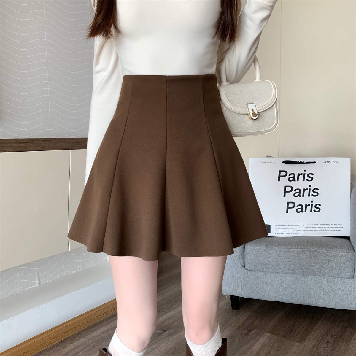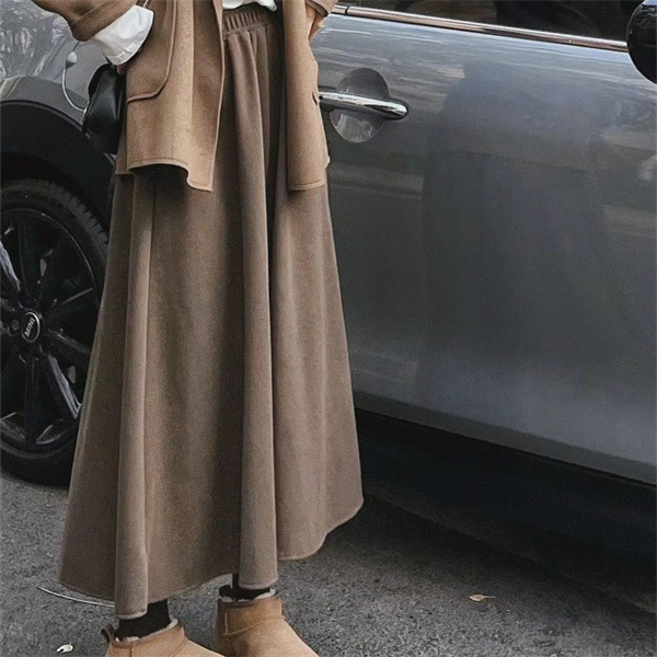 大きいサイズの太ったmmの毛の半身のスカートの女性の秋の2024年のa字の百のスカートの高い腰のスカートはやせていて股の傘のスカートを遮ります