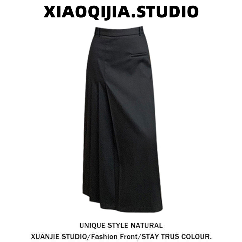大きいサイズの太ったmmの黒い半身のスカートの女性の春秋の新型の高い腰はやせています。
