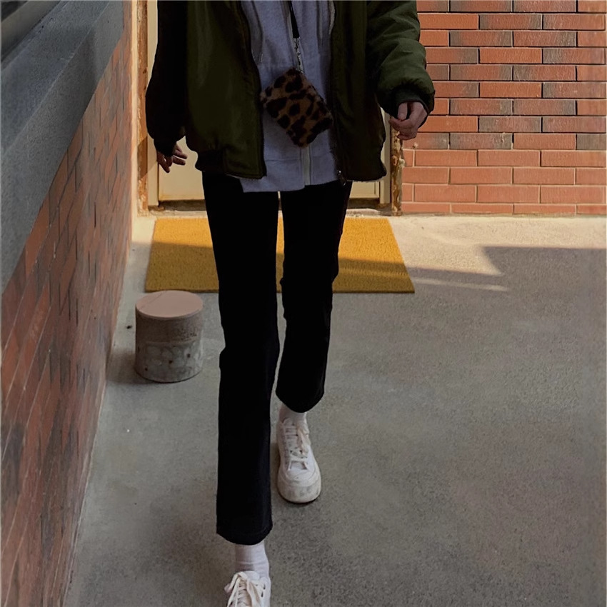 大きいサイズのベルベットのジーパンの女性の秋のナシの形の体つきの黒色の弾力のストレートなズボンの9分は足の太いパイプのズボンを遮ります。