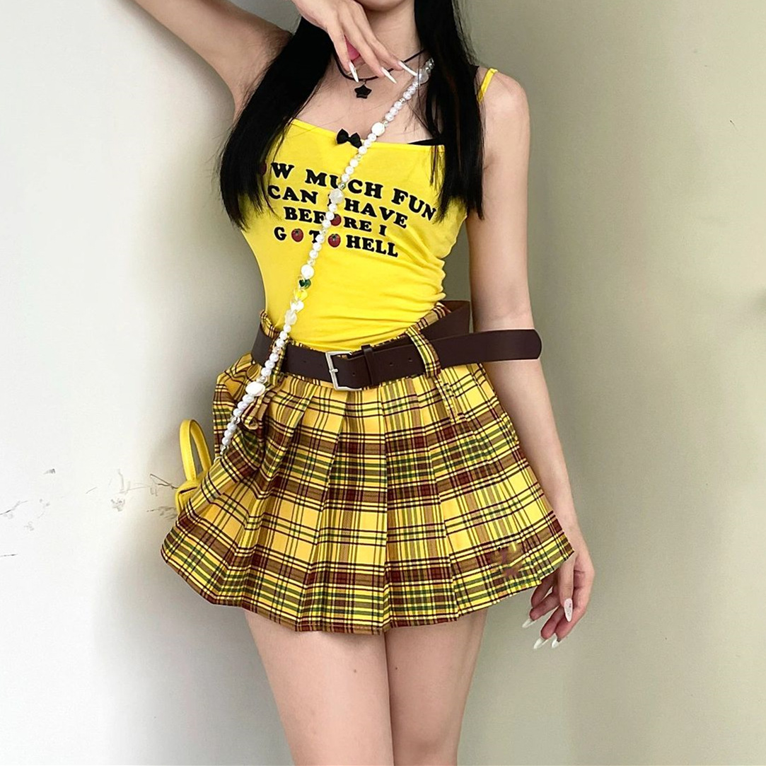 アメリカの黄色の格子の百倍のスカートの女性の大きいサイズの太っている妹のギャルのセクシーなJKの半身のスカートの学院の風のa字のスカート