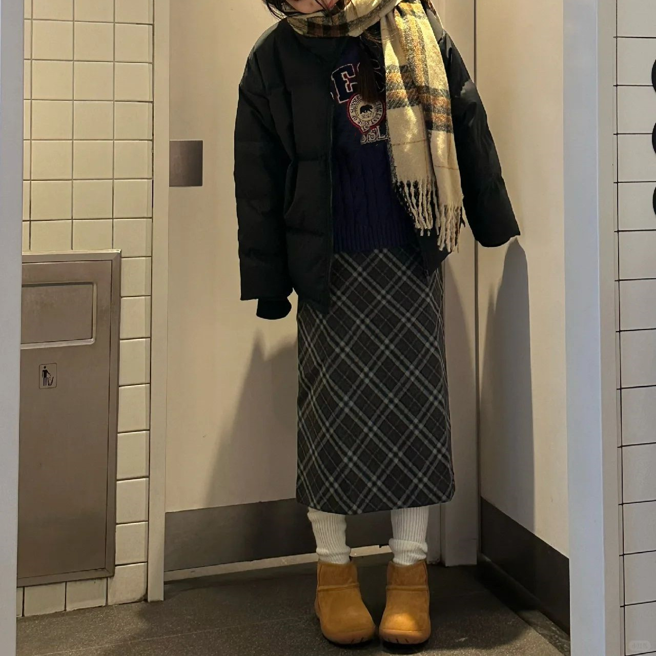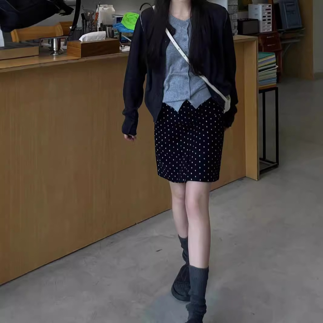 春と秋の毛の紋様の半身のスカートの女性の大きいサイズの太っているmmの高腰はやせているa字のまっすぐな筒のスカートの韓系の灰色の中で長いスカートが見えます。