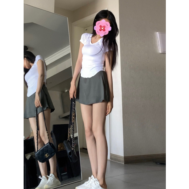 大きいサイズのぽっちゃりさん向け、ヒップを包み込むショートスカート、2024年秋の新作、ピュアでセクシーなハーフスカート、ハイウエストで着痩せ効果のあるスポーツパンツスカート