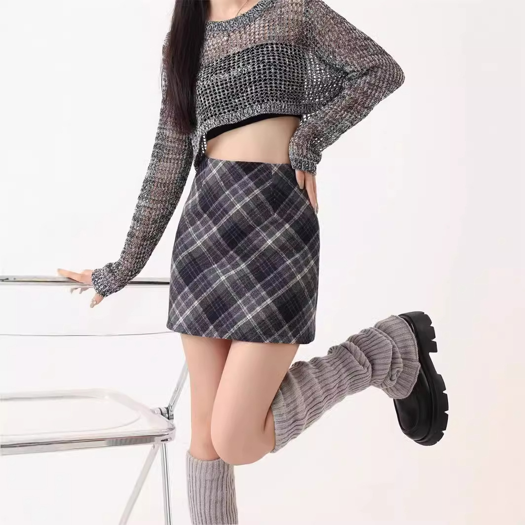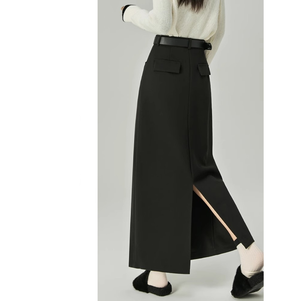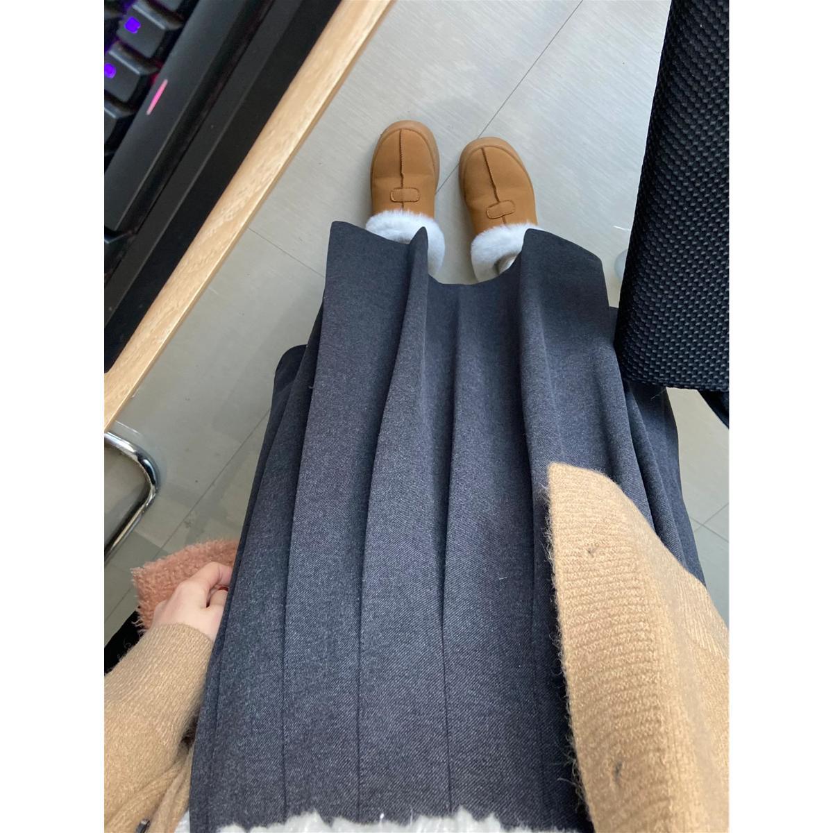 24春秋は灰色の毛を厚くしています。半身のスカートの女性の大きいサイズのハイウエストはやせています。