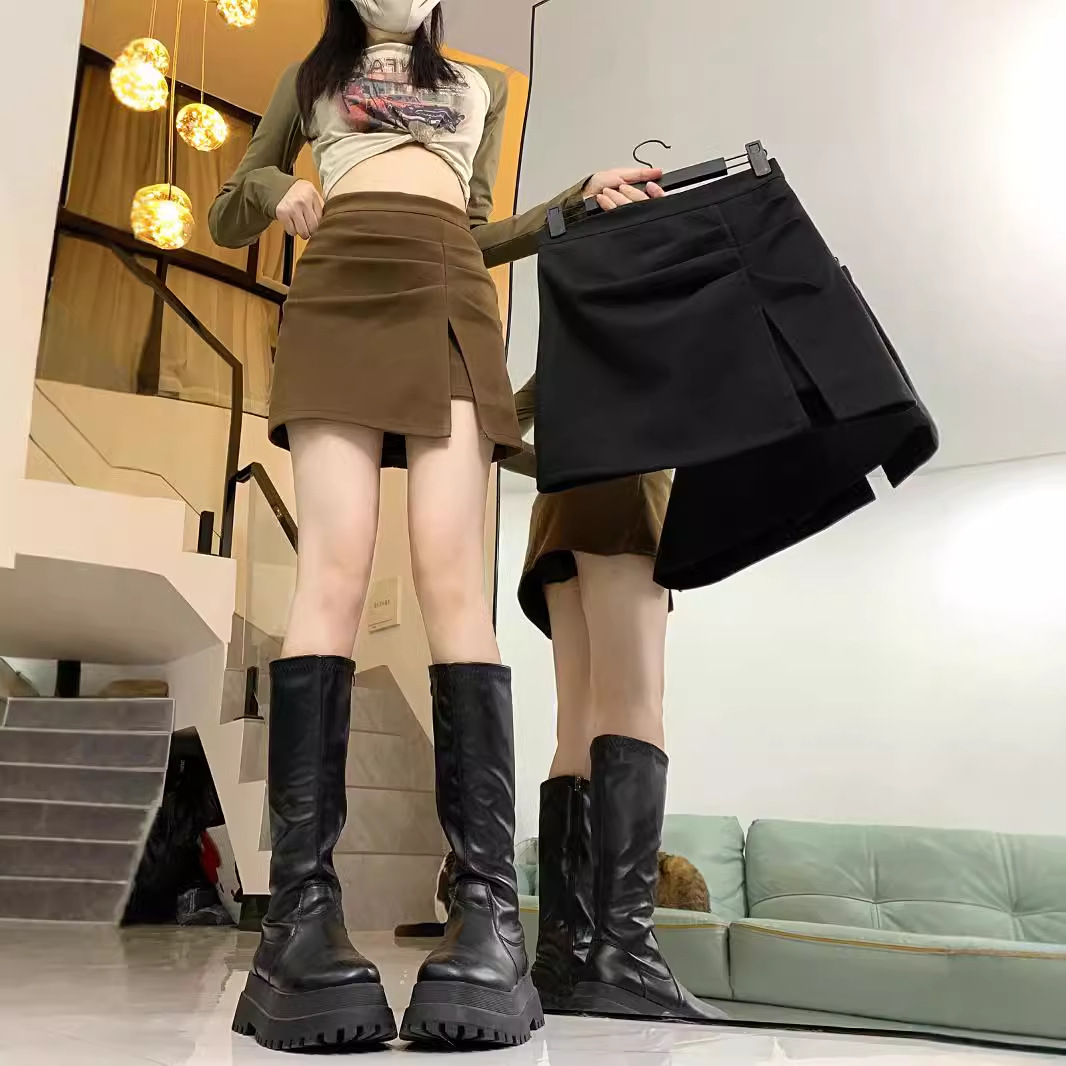 黒のタイトスカート、小さめのレザースカート、秋の新作、大きいサイズのPUショートスカート、ハイウエスト、ぽっちゃりさん向け、コーヒー色のタイトスカート、ハーフスカート、女性用