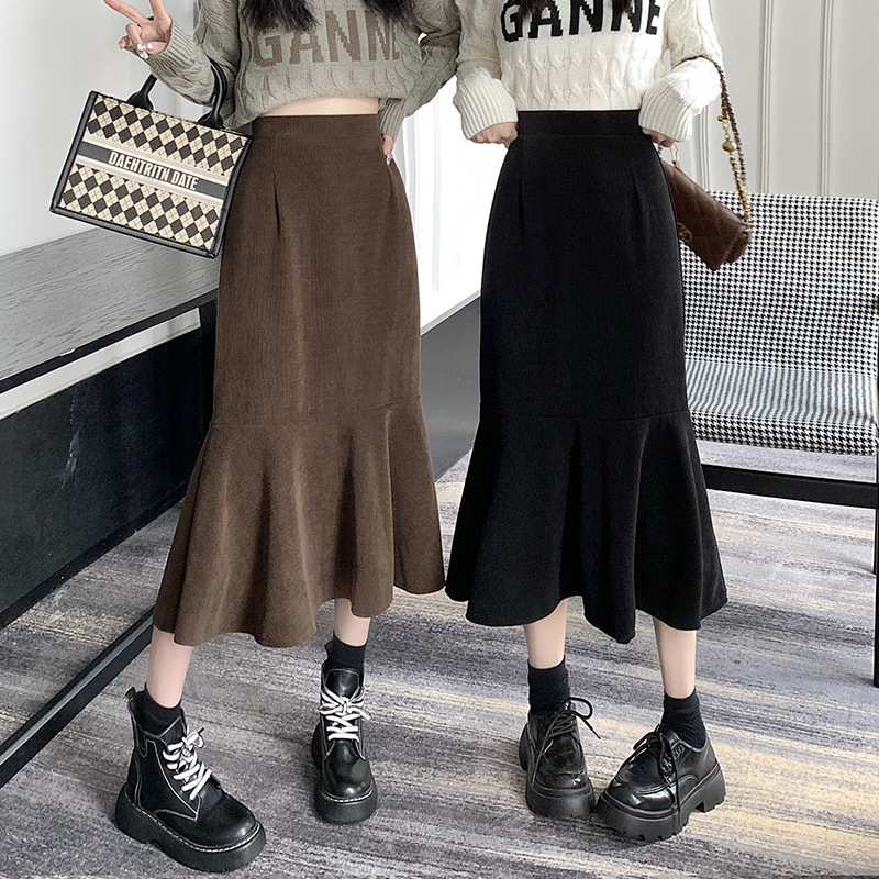 大きいサイズの太ったmmの黒い魚の尾のスカートの女性の秋の2024の新型の高腰はヒップのスカートのナシの形の体つきのA字のスカートを包みます