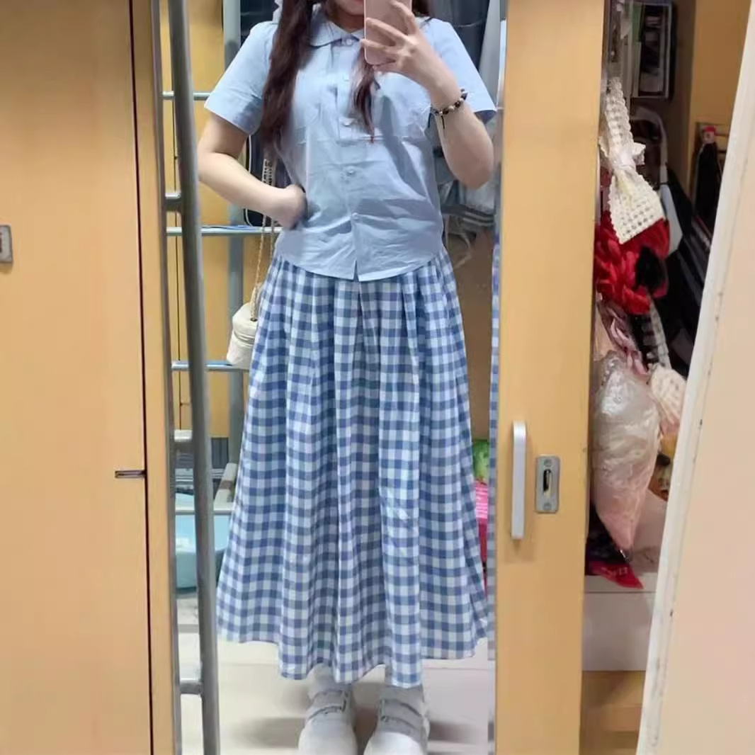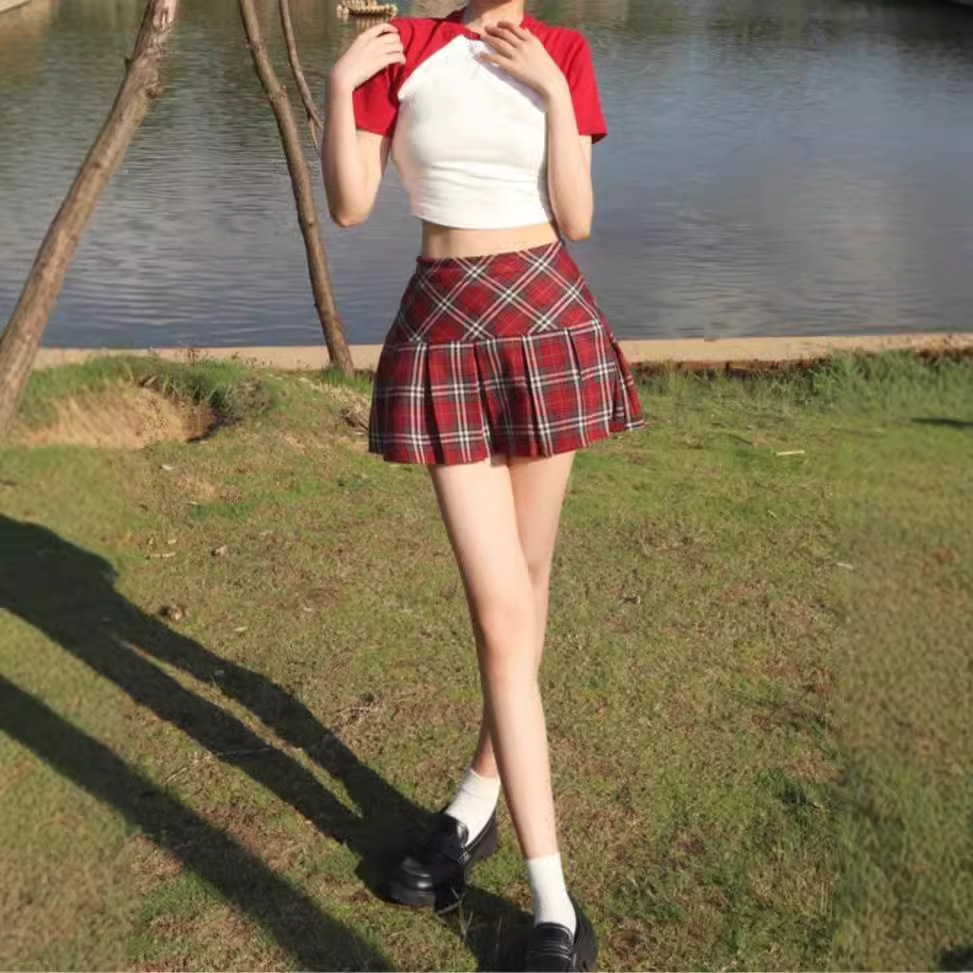 レトロなギャルの赤い格子のスカートのスカートの女性の大きいサイズの太っているmmの腰の短いスカートは光のa字の半分のスカートを妨げます。