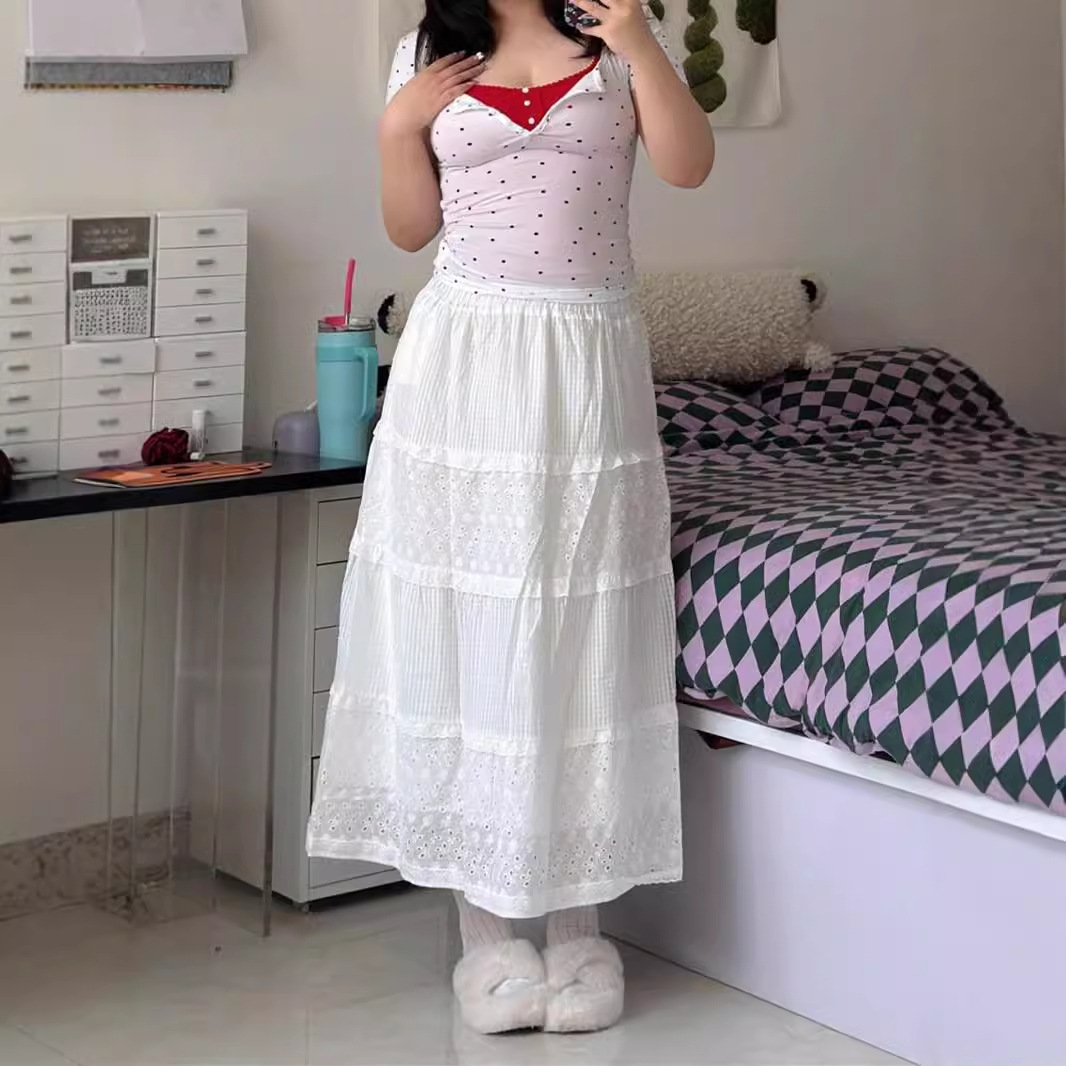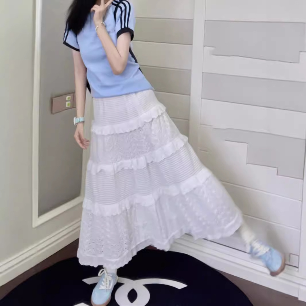 大きいサイズの太ったmmの高腰の半身のスカートの女性のa字の中の長いスカートのデザイン感の重工業の透かし彫りの蓬のケーキのロングスカート