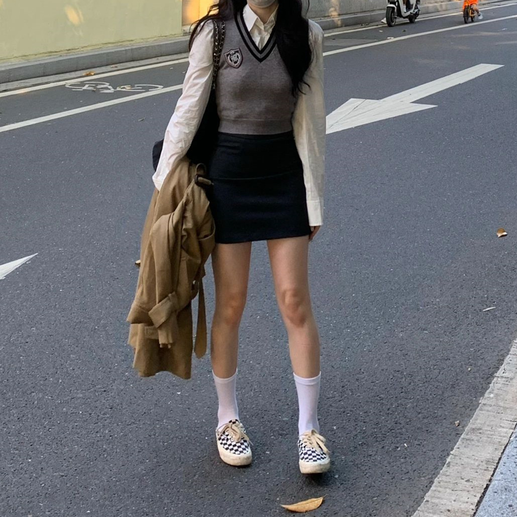 2024秋の新型スーツのスカートの女性の大きいサイズの太っているmmの高腰はやせている梨の形の体つきのa字のお尻の半身のスカートを現します。