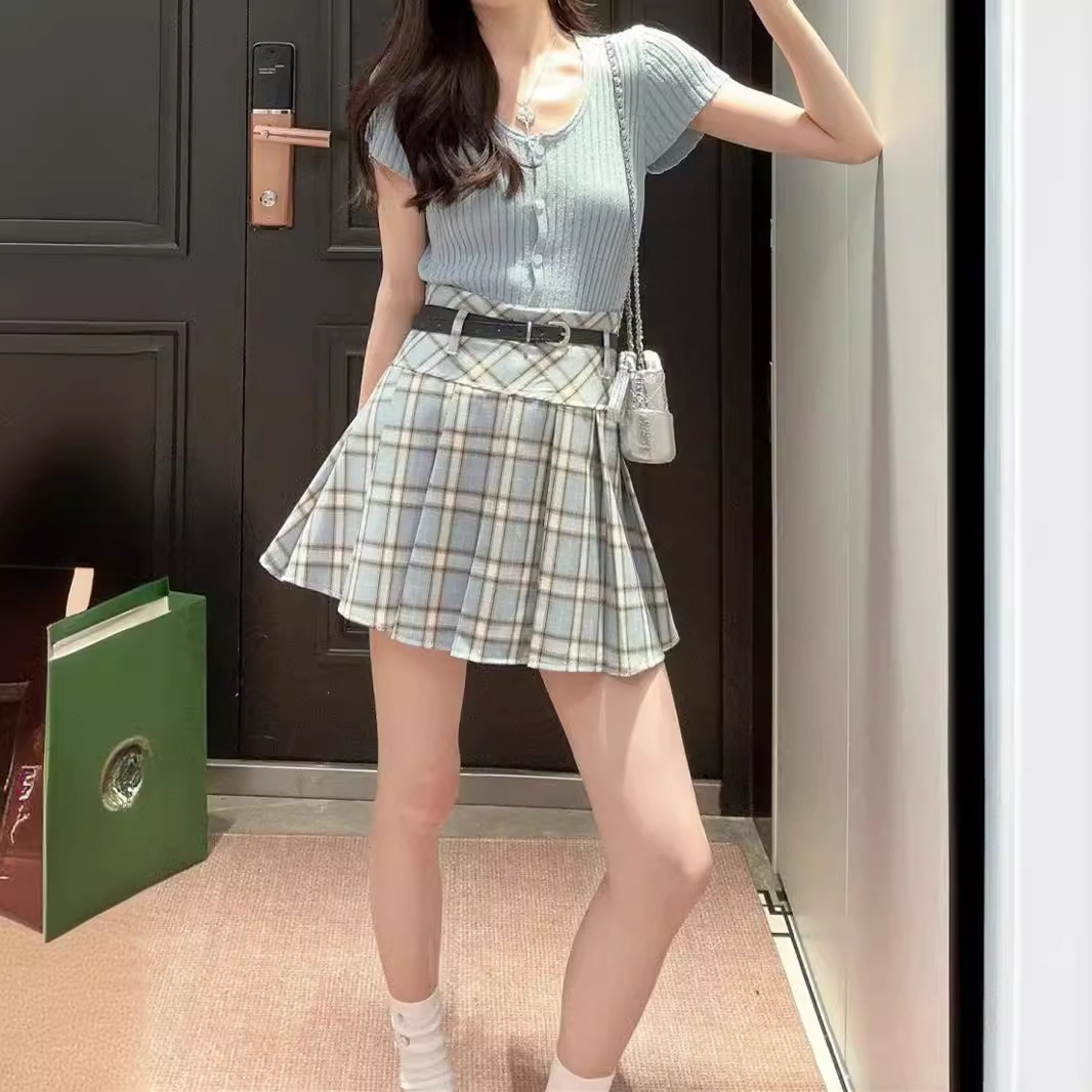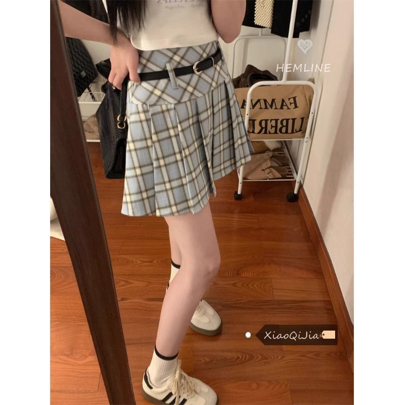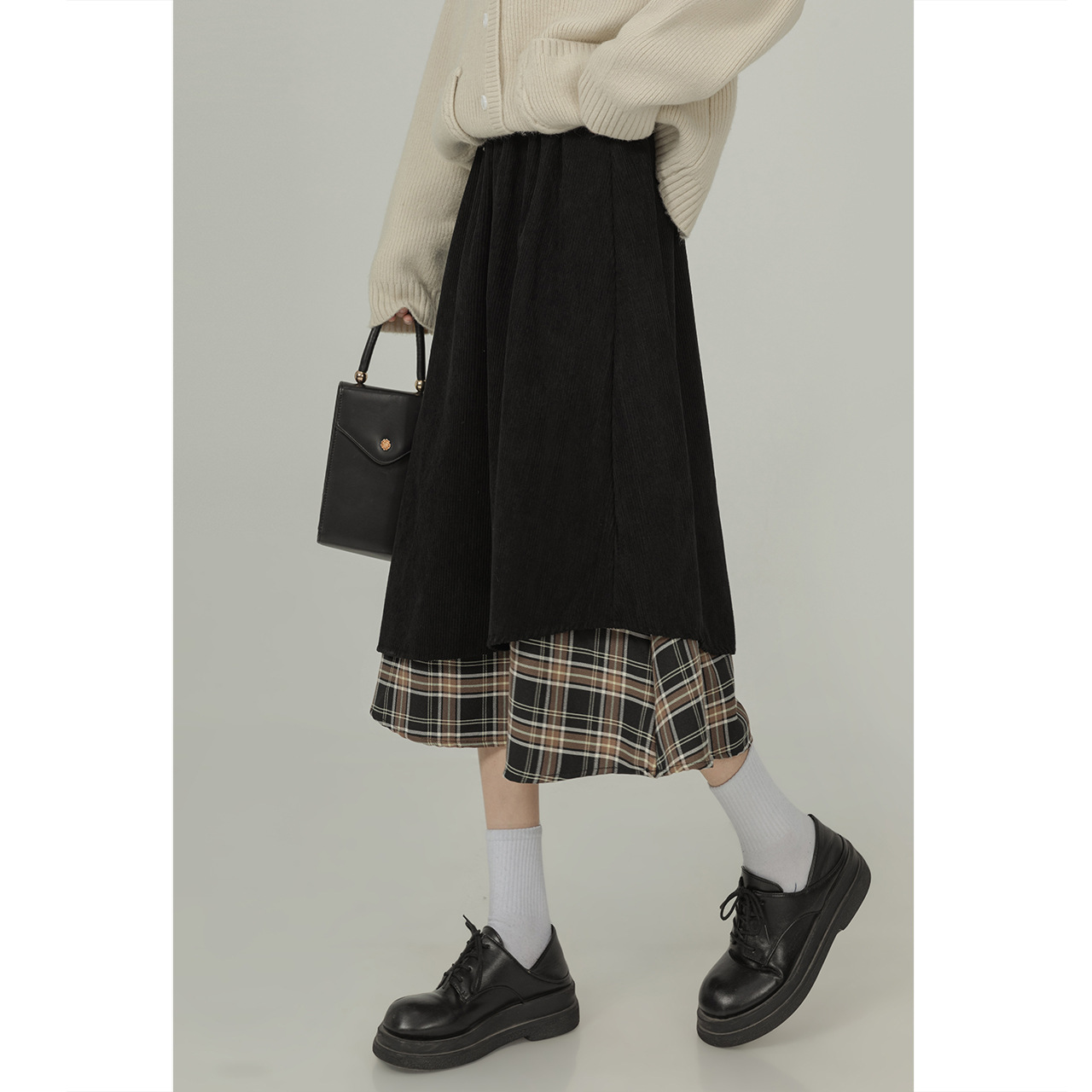 レトロな格子の百タックの高腰のスカートの女性の大きいサイズの微太ったmmの百合のデザイン感は色のA字にぶつかります。