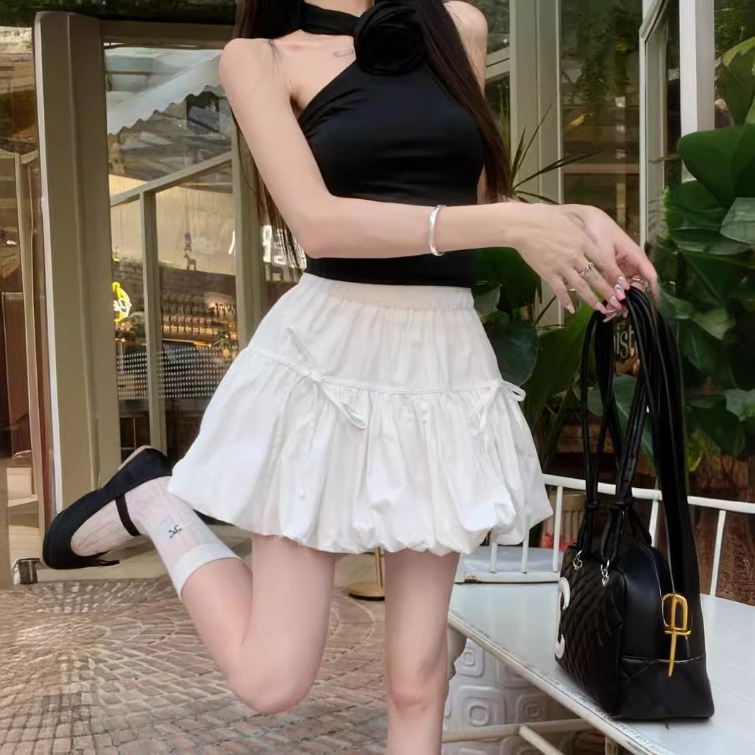 優しい気質の白い蝶結びの花のつぼみの半身のスカートの女性の夏の大きいサイズの太っているmmのデザイン感の蓬蓬のスカートのa字のスカート