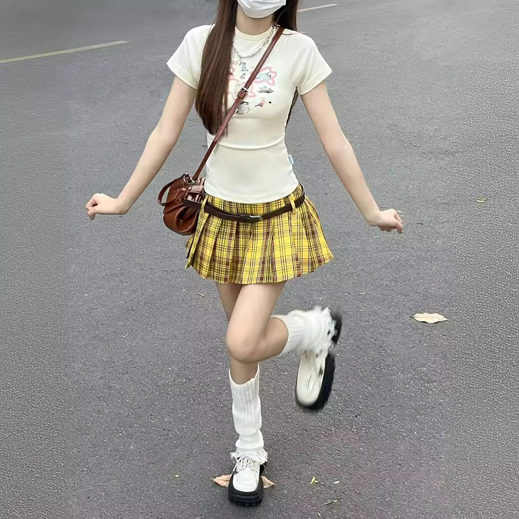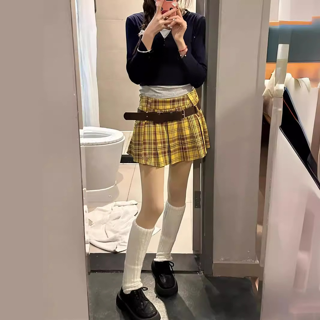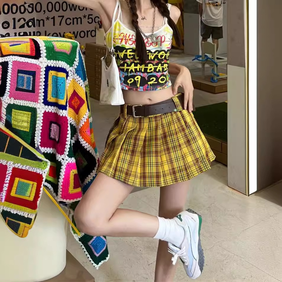 大きいサイズの微太ったmmの学院の風の格子の百パートナーのスカートの女性の夏の黄色の格子縞のスカートの高い腰は股を遮ってやせているショートスカートを現します。