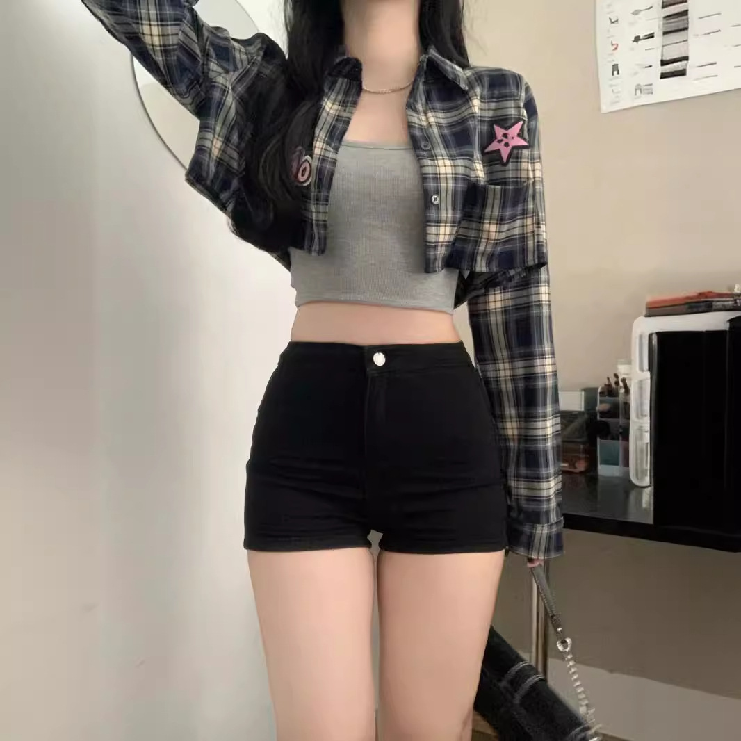 大きいサイズの太ったmmギャルの黒い半ズボンの弾力性のジーパンの女性の夏のデザイン感の包みの尻の熱いズボンのセクシーな超ショートパンツ