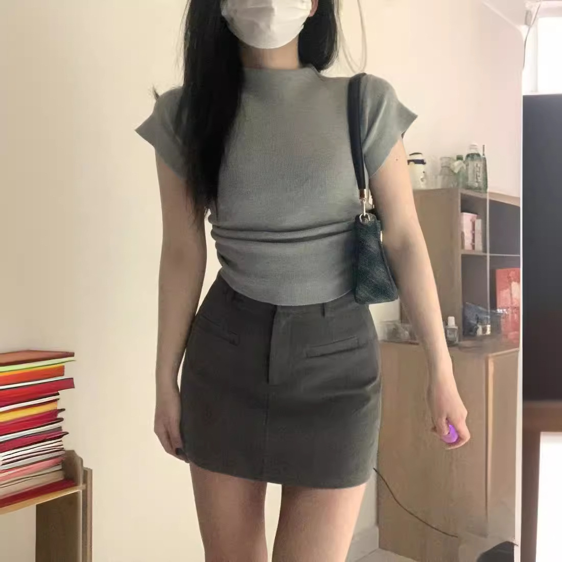 大きいサイズのスーツのa字の半身のスカートの女性の腰が高くてやせている包みのヒップのスカートの太っているmmの半分のスカートの小さい背の灰色のショートスカートの夏